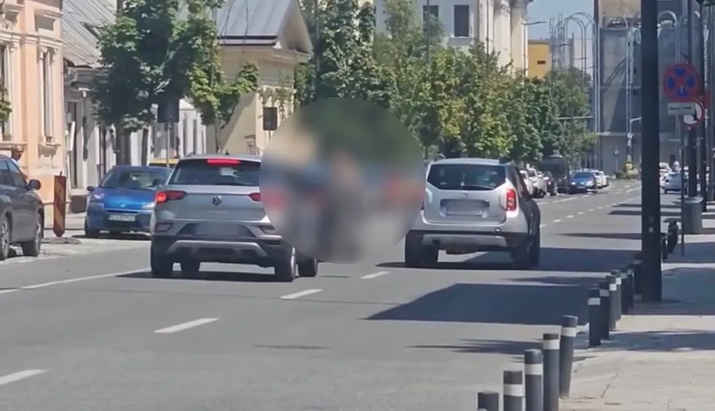 Un bărbat a fost surprins azi 4 iulie, în mijlocul străzii Avram Iancu având un comportament straniu.