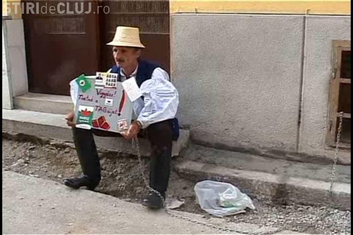 VIDEO: Un barbat din Sic s-a legat cu lanturi de sediul UDMR din Cluj. El protesteaza fata de excluderea sa din partid!
