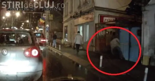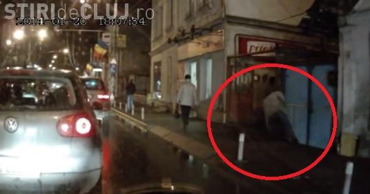 Un bețiv, la un pas să cadă în fața mașinilor în Piața Cipariu. A fost lăsat pe trotuar - VIDEO
