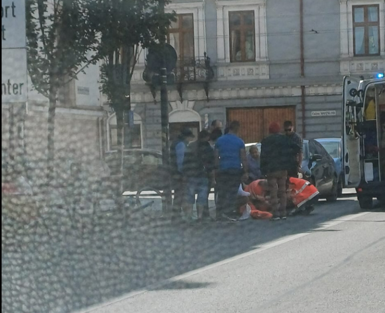 Un biciclist accidentat în centrul Clujului, pe strada Coșbuc. Aglomerația și străzile înguste din Cluj-Napoca, pericol public pentru bicicliști!- FOTO