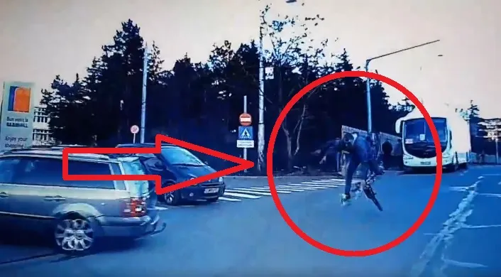 Rezultatul se vede în filmarea realizată de șoferul care a semnalizat stânga. Biciclistul a căzut în cap.