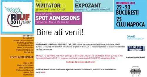 Ai nevoie de 5 lei pentru a vizita universitati renumite din Spania, Franta, Belgia, Marea Britanie, SUA sau Canada. Acesta este pretul biletului pentru o vizita la cel mai mare targ international de universitati din Europa de Est –The Romanian International University Fair – organizat de Grupul EDUCATIVA in perioada 22-23 octombrie la Sala Palatului din Bucuresti si in 25 octombrie la Casa de Cultura a Studentilor din Cluj-Napoca.