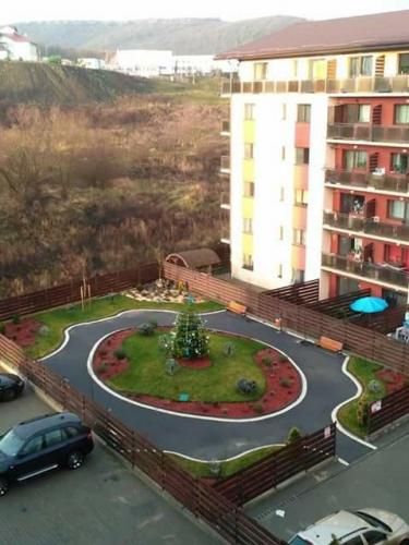 Constructorul acestui bloc le dă lecții altora, din comună, dar și din Cluj-Napoca, care îngrămădesc construcții și betoane fără un ”petic” de verdeață.