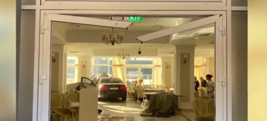 Un BMW de Cluj a intrat într-un restaurant din Băile Herculane și a distrus totul în cale. Cum s-a produs totul - VIDEO