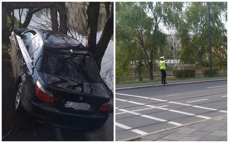 Un BMW era să cadă în Someș, în zona Cluj Arena, pe Splaiul Independenței. Zona este un magnet pentru șofer, care motivează că derapează pe șina tramvaiului.