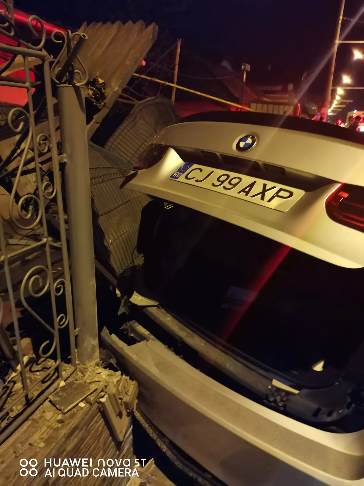 Nu este exclus ca BMW -ul să fi avut viteză, a derapat și mașina s-a făcut praf după ce a lovit gardul. Imaginile arată că bolidul a fost avariat serios, iar pagubele se ridică la circa 10.000 de euro.