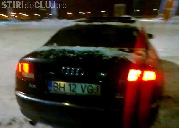 Șoferul unui bolid Audi A8 a fost filmat în parcarea Polus Center în timp ce făcea drifturi pe zăpadă.