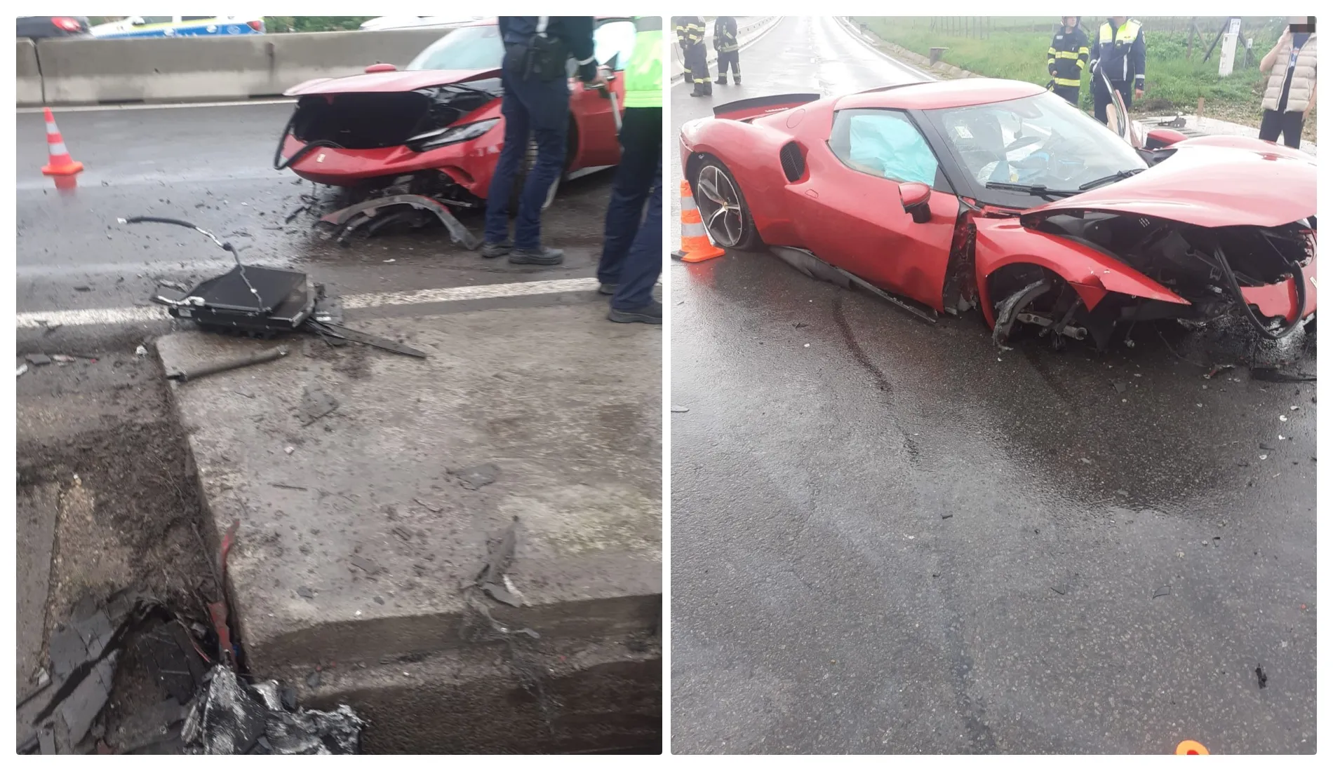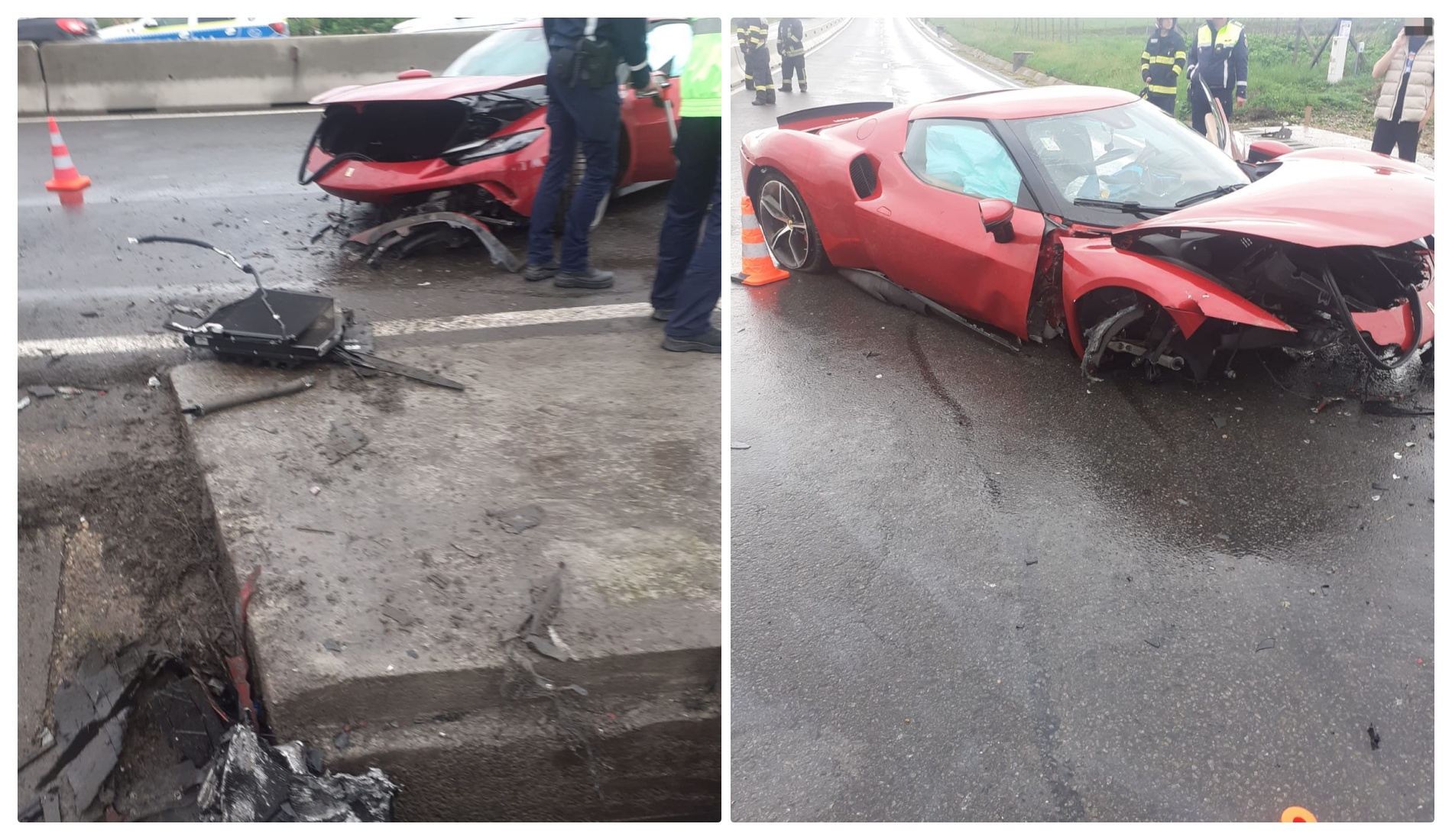Un bolid de lux s-a făcut praf la Copăceni, după ce a lovit o structură de beton.