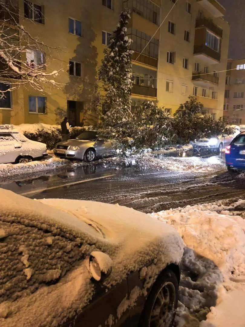 Incidentul s-a petrecut pe strada Fabricii de Zahăr nr.5. Bradul a fost rupt de greutatea zăpezii căzuta în ultimele zile.