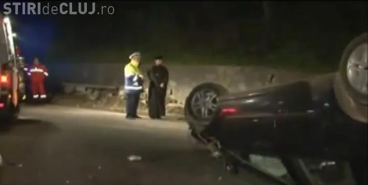 Calugarul nu a patit nimic, desi masina s-a rasturnat pe o sosea din Dej. Soferul a scapat fara nici cea mai mica rana, dupa ce a intrat cu masina intr-un stalp de curent si s-a rasturnat.