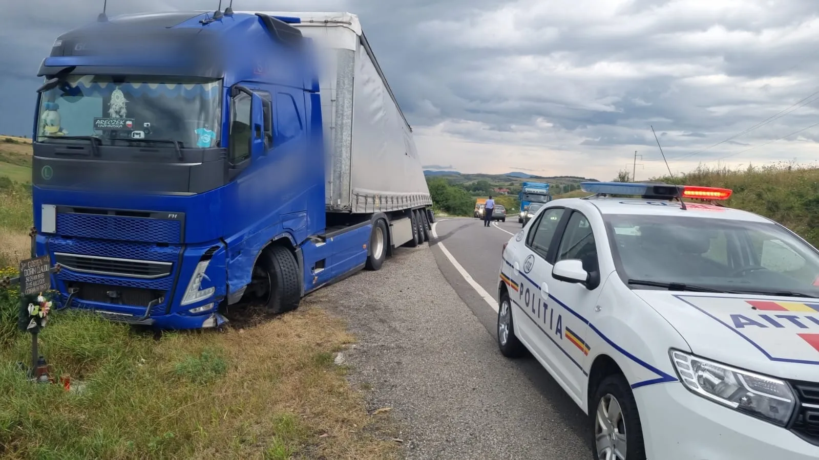 Un camion a derapat pe DN1 E60, în apropierea localității Șaula! Doi șoferi străini, implicați în accident, o mașină e făcută praf - FOTO