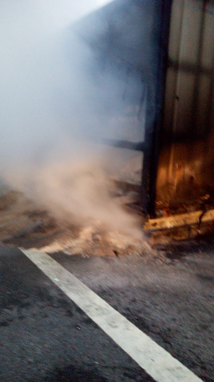 Până la sosirea pompierilor, șoferul a dus ansamblul de autovehicule, în afara părții carosabile și a decuplat capul tractor față de remorca care luase foc.