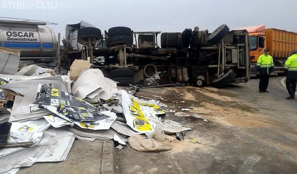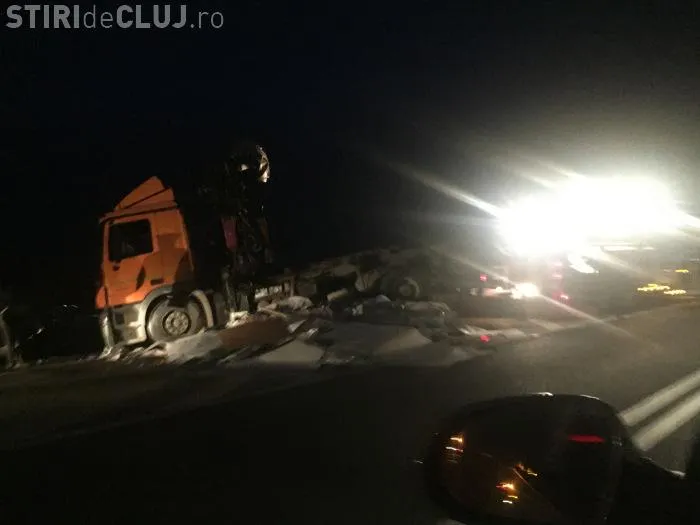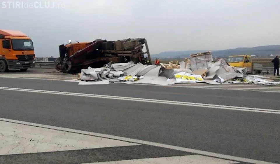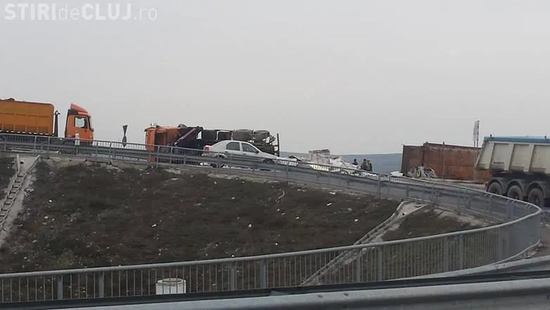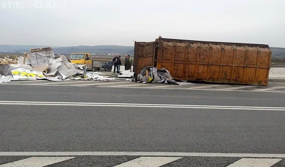 Un camion s-a făcut PRAF pe centura Apahida. S-a răsturnat ca un ”bolovan” - FOTO