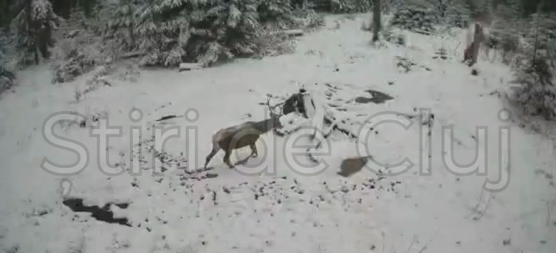 Un cerb spectaculos, demn de marile filme Disney, a fost surprins într-un decor rupt din basme, în inima Parcului Natural Apuseni.
