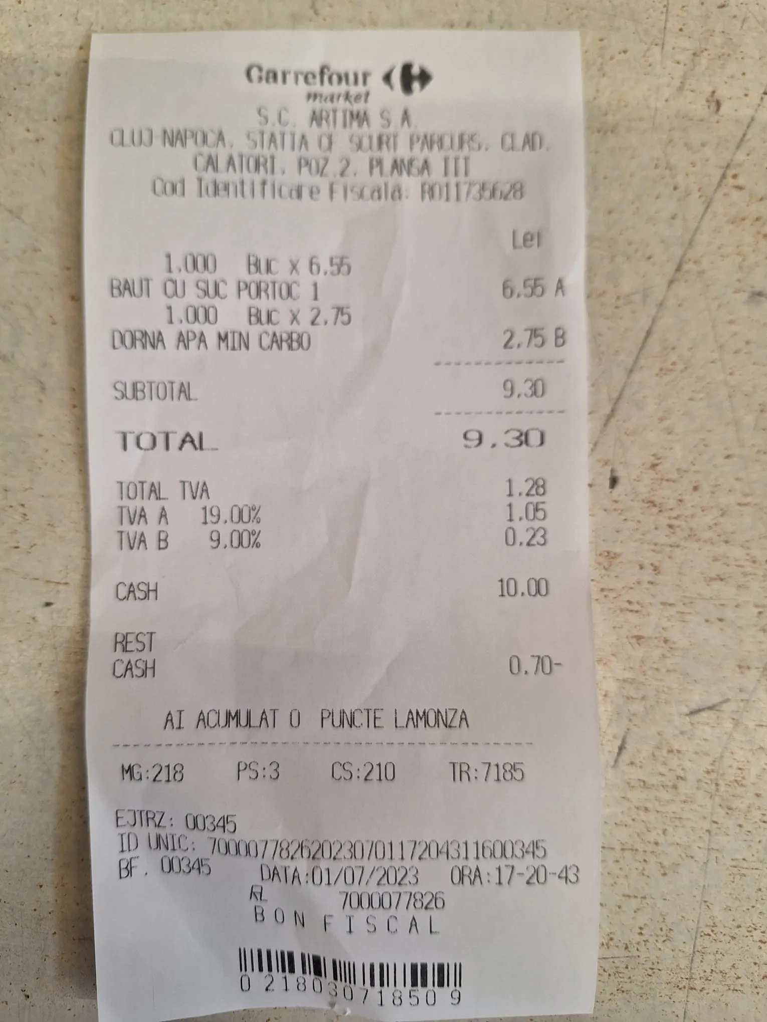 În luna iunie, Protecția Consumatorilor Cluj a amendat firma care administrează magazinele Carrefour, SC Artima SA, pentru diferențe de preț de la raft la casa de marcat.