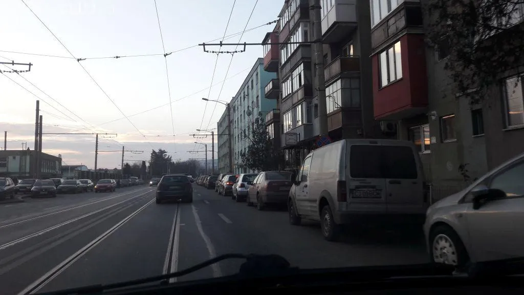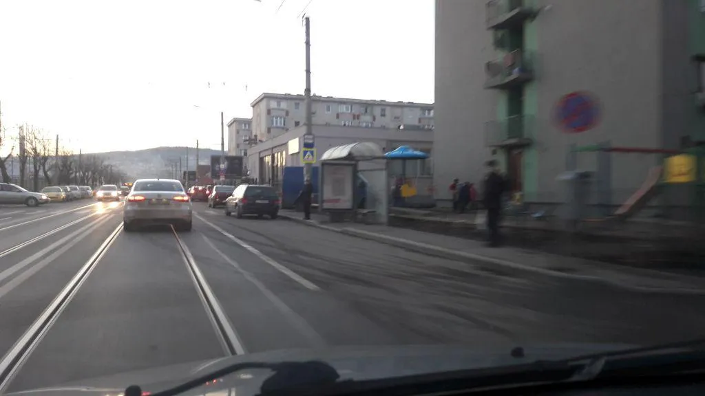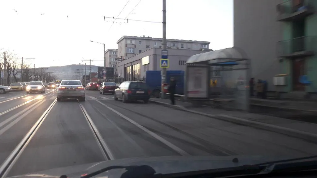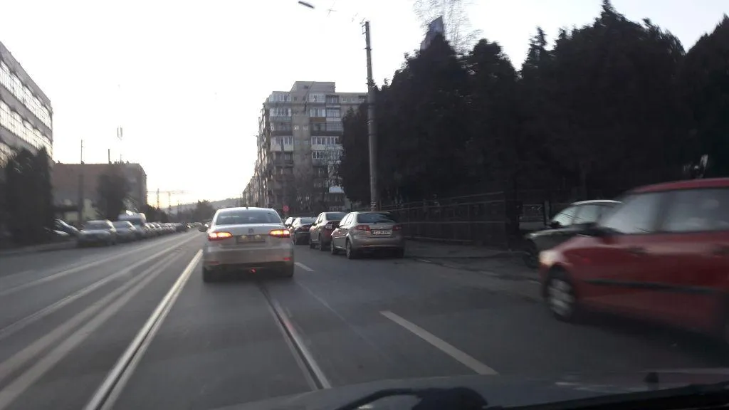 - statiile de tramvai sunt amplasate ”in buricul targului”, iar cand tramvaiul opreste pentru a se urca oamenii, banda de langa bordura fiind blocata de masini parcate, tot traficul este oprit.