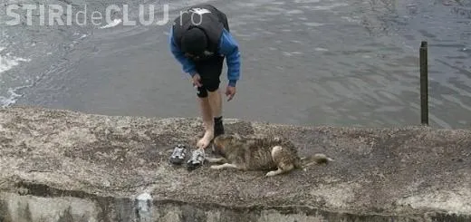 Un clujean a sărit în Someș pentru a salva un câine - VIDEO