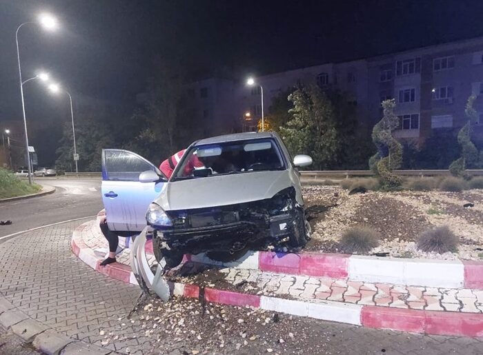 Ajunși la fața locului, polițiștii au constatat faptul că un autoturism a acroșat scuarul de delimitarea a benzilor, un indicator rutier, precum și sensul giratoriu.