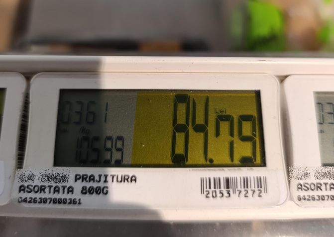 Într-o postare pe o rețea de socializare, clujeanul a pozat un cântar pe care a pus 800 de grame de fursecuri sau prăjitură asortată și s-a crucit când a văzut prețul: 84,79 lei, adică aproximativ 100 de lei pe kilogram.