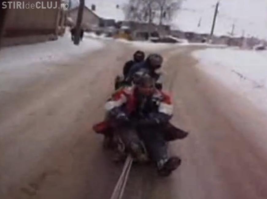Un clujean FĂRĂ PERMIS a tras după mașină săniile a trei copii, care au fost loviți de un alt șofer