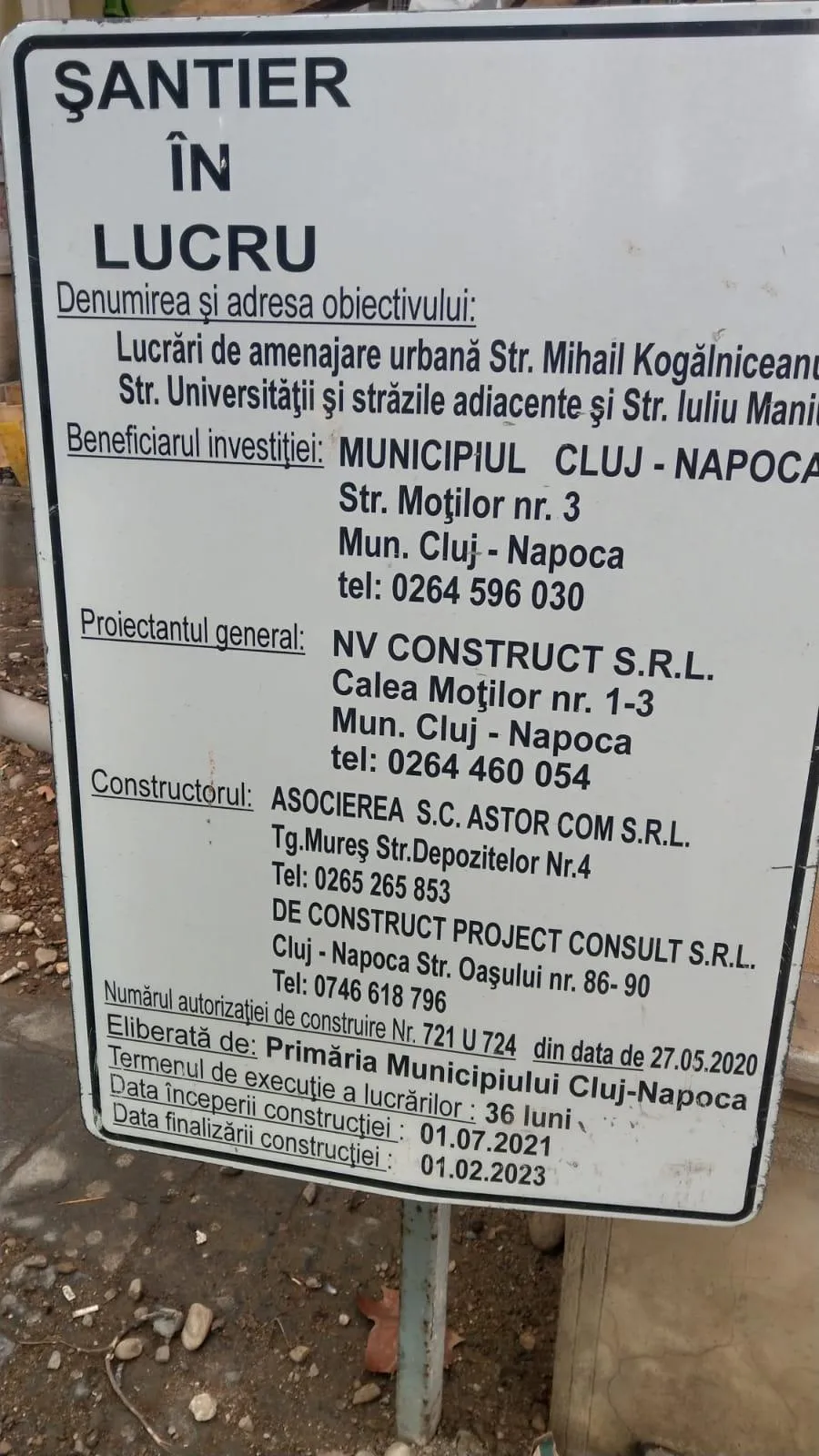 Drept dovada ca termenul de execuție din contract este de 19 luni sta si panoul de publicitate a șantierului, montat la intersecția B-dul Eroilor cu str Bolyai unde termenul de execuție este desemnat ca fiind 01.07.2021-01.02.2023.