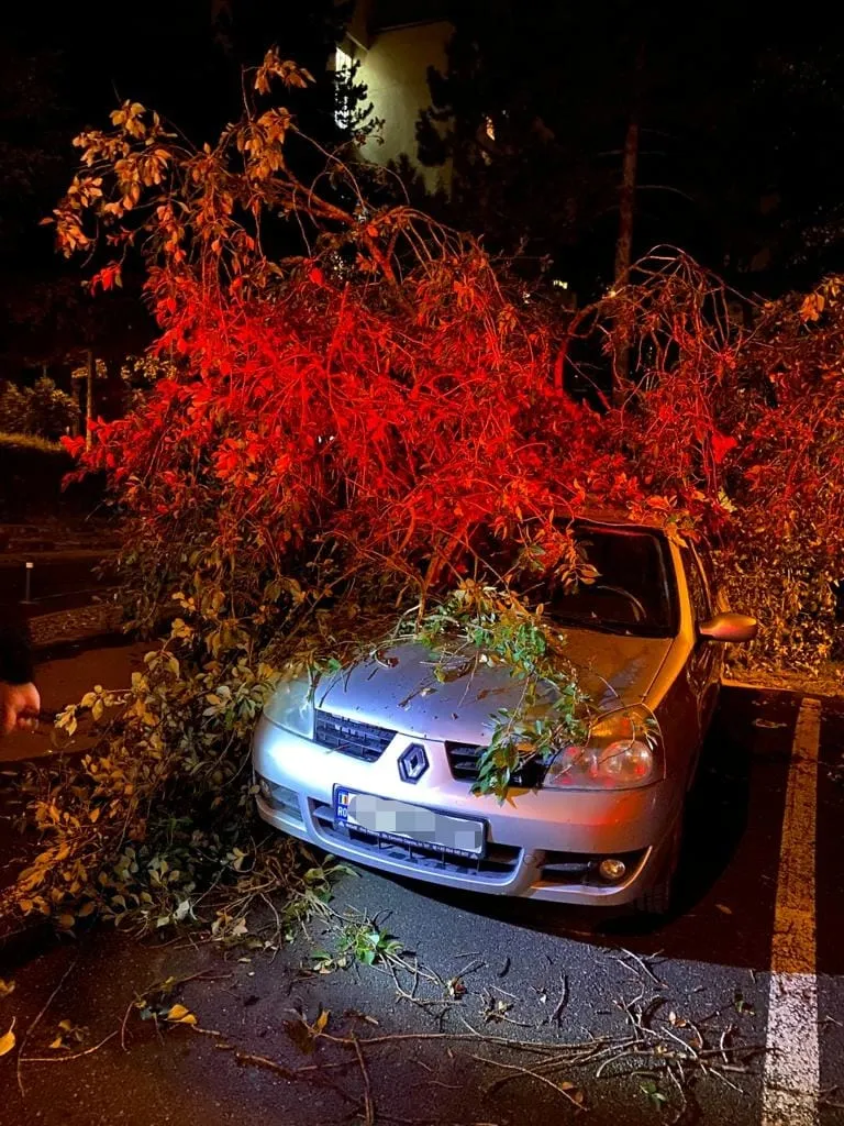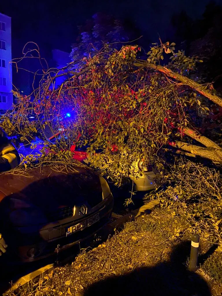 Un copac a căzut peste două autoturisme pe Aleea Peana, din Cluj-Napoca.