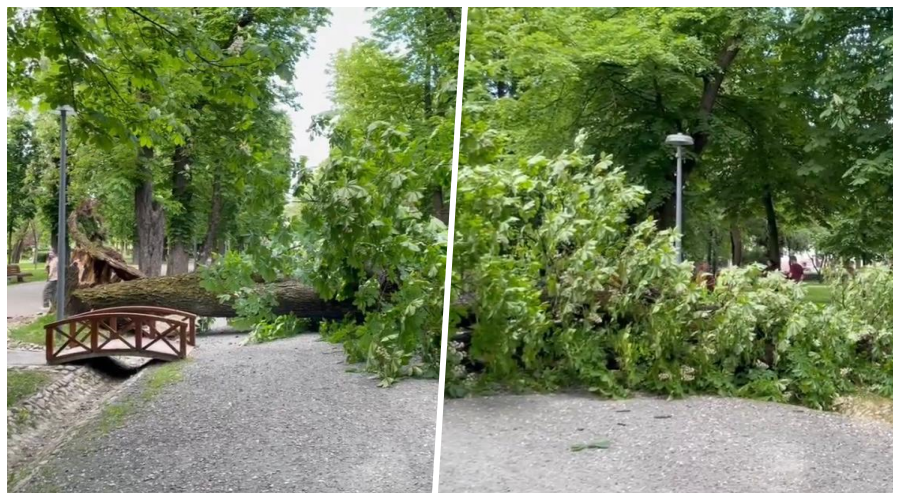 Un copac s-a răsturnat în Parcul Central din Cluj-Napoca, în mijlocul trecătorilor aflați la plimbare: ,,Două femei au fugit în ultima clipă” - VIDEO