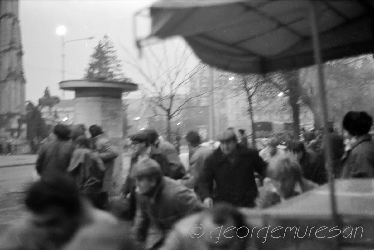 Un fotograf a surprins o serie de imagini de la incidentele care au avut loc în Piața Libertății la Cluj-Napoca, în 21 decembrie 1989, locul unde s-a murit și unde s-au adunat protestatarii.