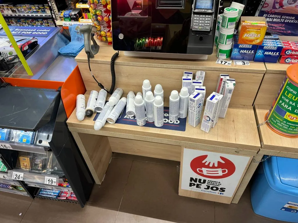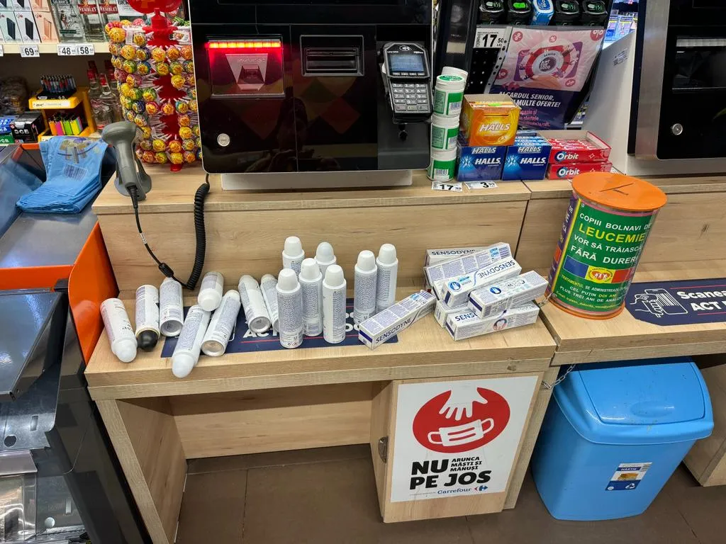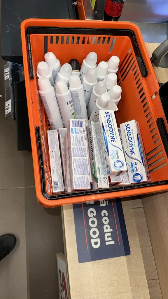 Spray-urile au fost adunate de pe drumul național, iar cutiile cu pastă de dinți au rămas în magazinul de unde au fost furate, fiind abandonate de hoț.