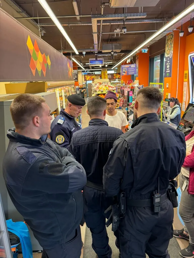 ”Era un cetățean care lucrează la Glovo și care a îndesat în geacă 21 de pachete de pastă de dinți. L-am somat să se oprească, dar a reușit să fugă. Am încercat să îl imobilizez cu ajutorul paznicului, dar acesta era un om în vârstă și hoțul se vedea că era bine antrenat. Nu că a făcut sport, dar a muncit serios la viața lui. A fugit în tricou. Am încercat să îl imobilizez și a renunțat la haine. Avea două rănduri de geci (n.red. probabil pentru a masca mai bine produsele furate).