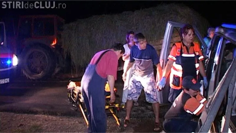 Un microbuz cu 6 muncitori din Dej a intrat sub un tractor nesemnalizat la Sanmarghita - VIDEO