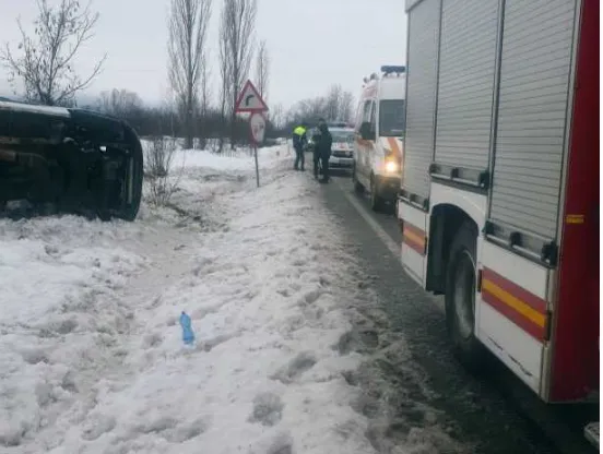 Un microbuz în care se aflau opt persoane s-a răsturnat miercuri dimineața în afara părții carosabile, pe raza orașului Călan, județul Hunedoara. În urma accidentului, o femeie a necesitat îngrijiri medicale.