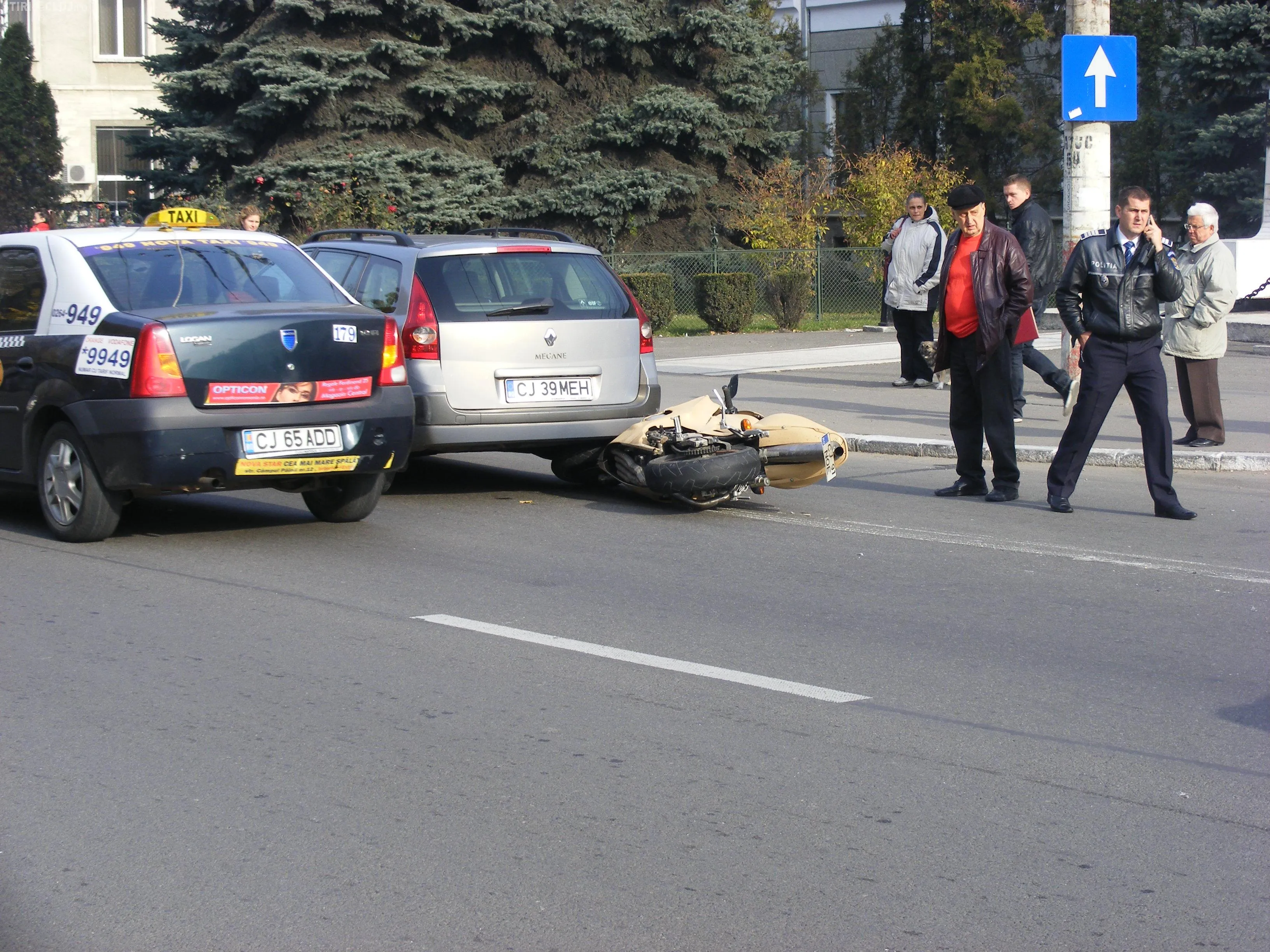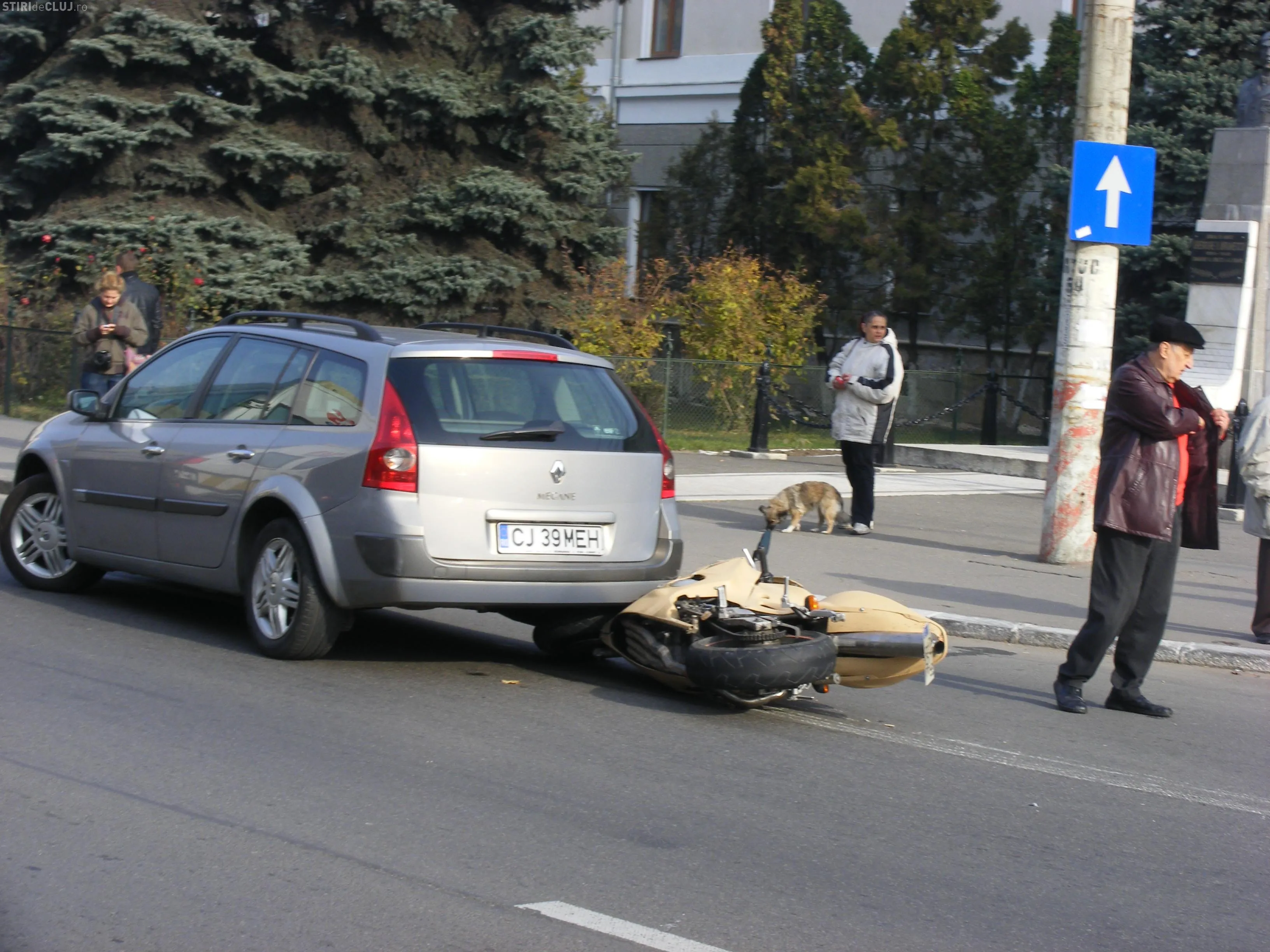 Un motociclist care circula cu viteza a fost implicat intr-un accident, in jurul orei 10.30, in fata Comandamentului Militar Cluj. Barbatul a intrat intr-un autoturism care stationa la stop.