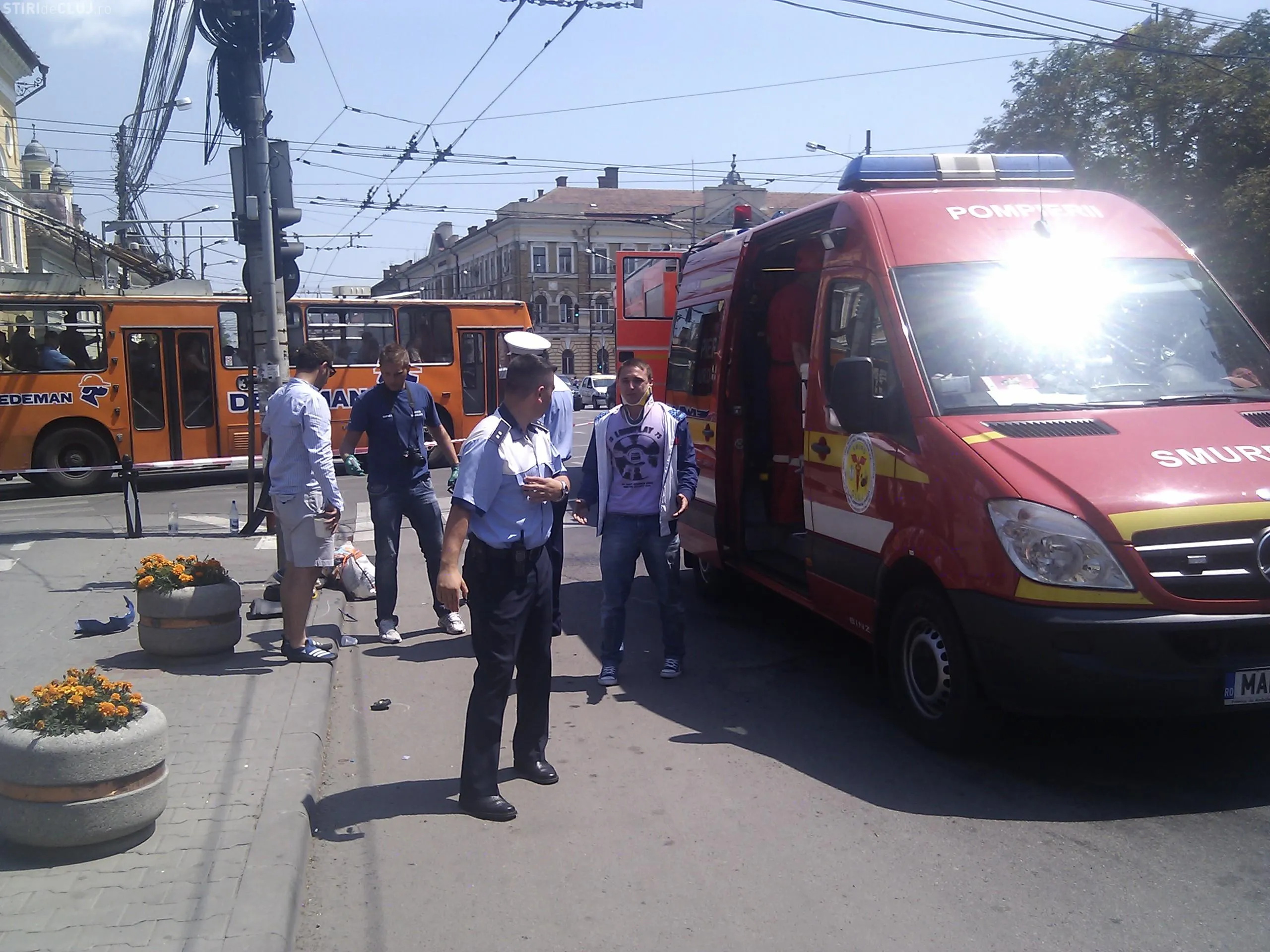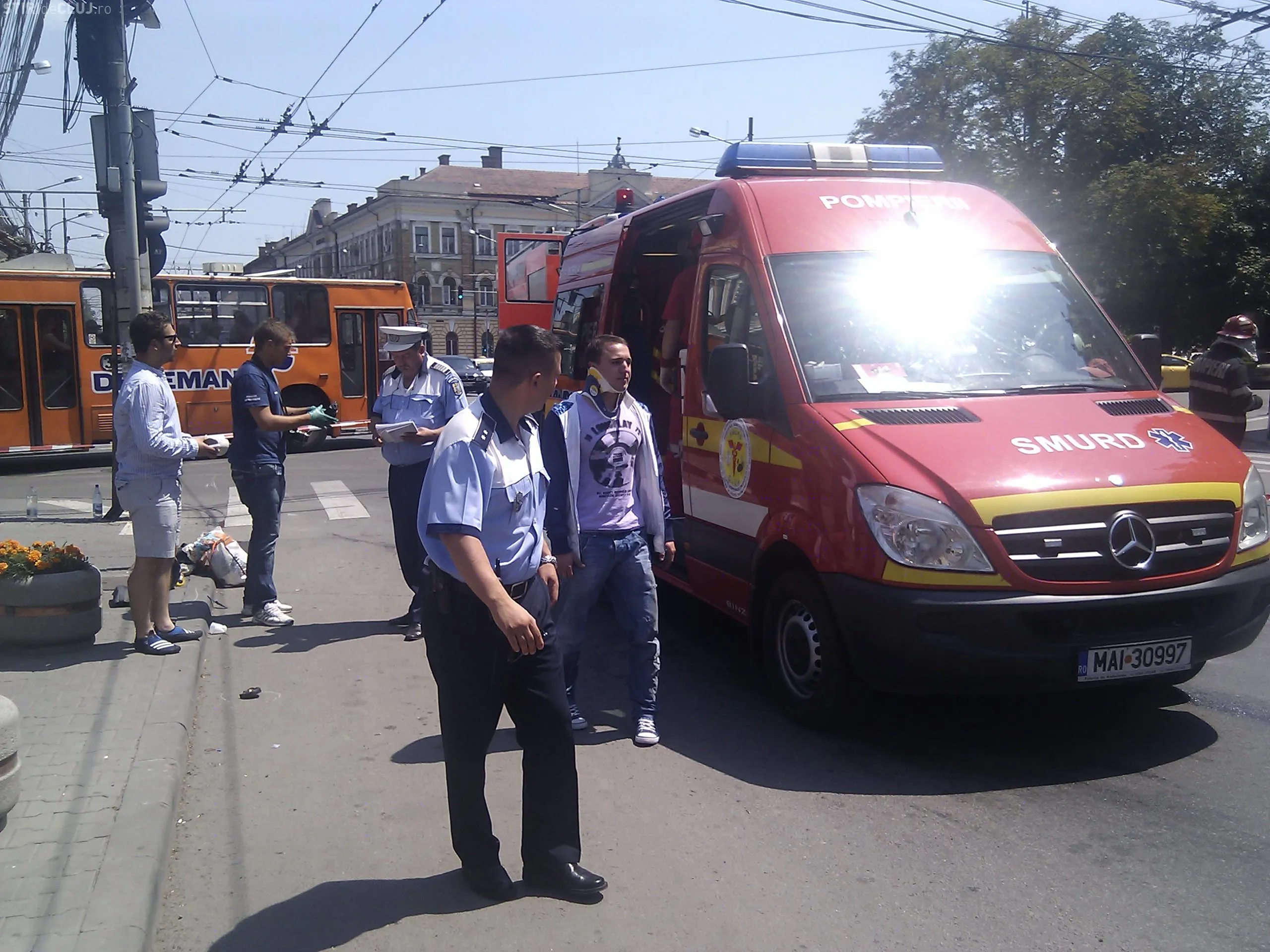 Soferul unui troleibuz a oprit pentru a-i lasa pe pietoni sa treaca, dar motociclistul care circula in paralel cu mijlocul de transport in comun nu i-a vazut pe pietoni la timp. "Am trecut pe langa troleibuz si au trecut pe rosu niste oameni. Nu am mai apucat sa pun frana. Veneam din Marasti si eram pe banda intai pe langa troleibuz", a declarat pentru Stiri de Cluj motociclistul.