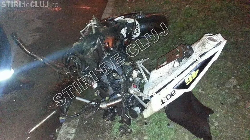 Bikerul a pierdut controlul asupra motocicletei și a intrat într-un stâlp. Impactul a fost nimicitor, iar bucăți din motocicletă s-au împrăștiat peste tot.