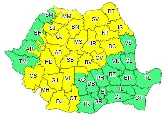 Meteorologii de la ANM au mai emis un avertisment de tip cod galben de furtuni, care va afecta aproape jumătate dintre județele țării.