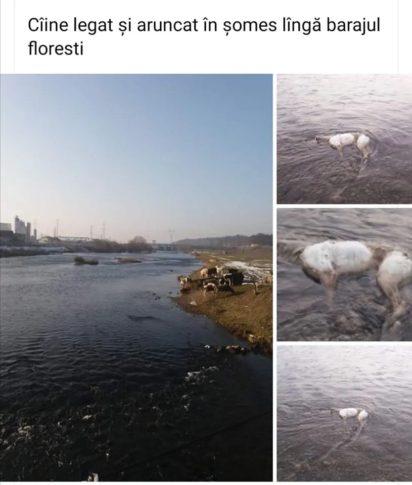 Un nou caz de barbarie! Câine legat și aruncat în Someș, la Florești - FOTO