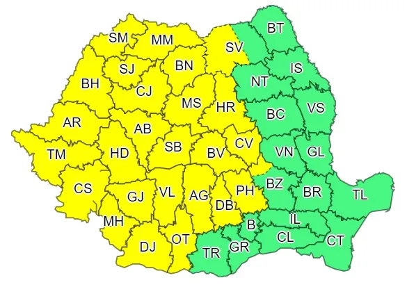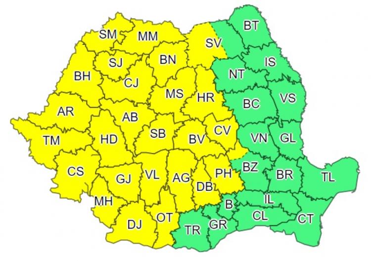 Meteorologii de la ANM au emis un nou avertisment de tip cod galben de vreme rea, care va afecta aproape toată țara.