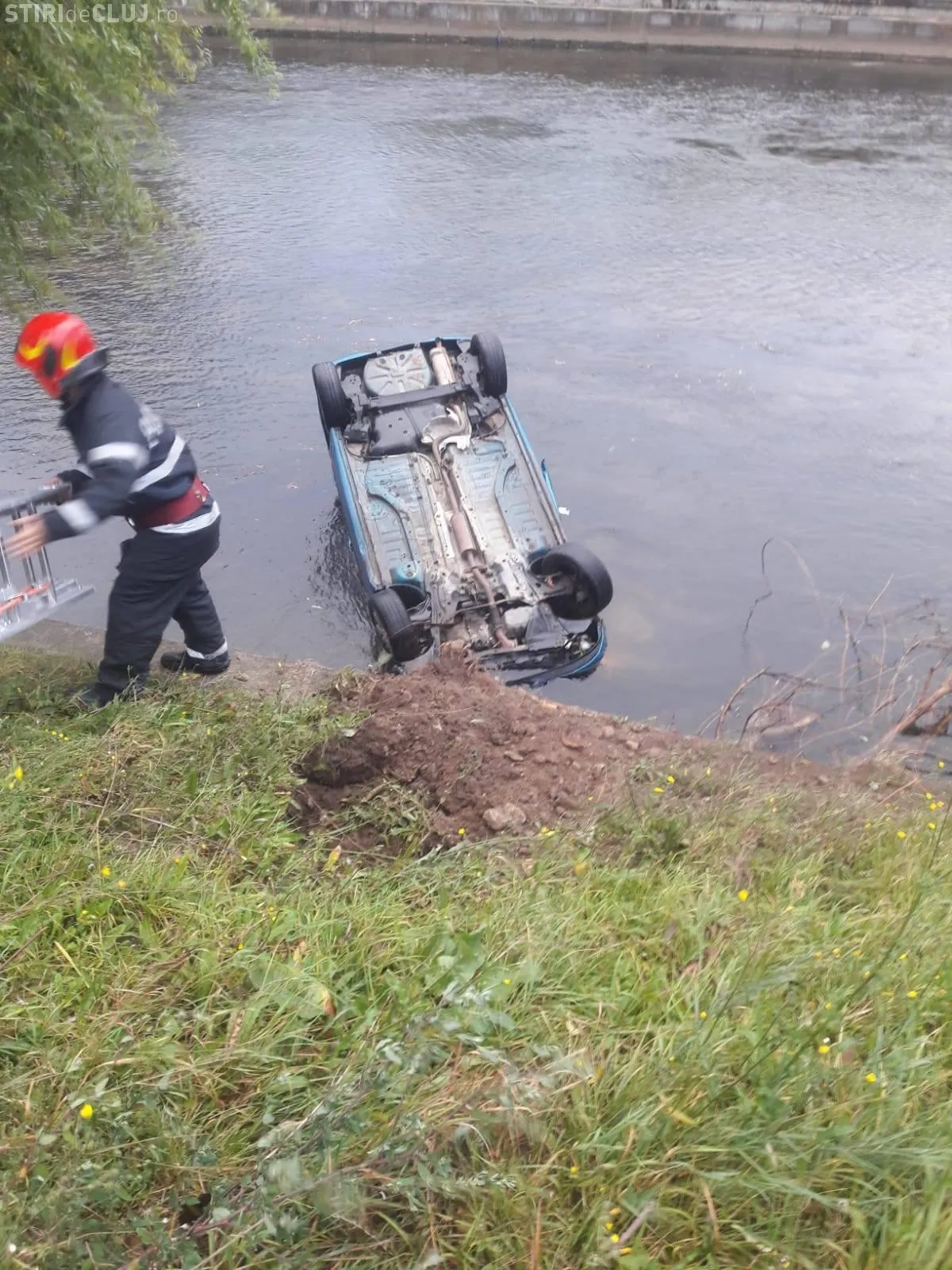 Un alt șofer care s-a crezut prea stăpân pe mașina lui a zburat de pe sosea direct în Someș, în zona BT Arena.