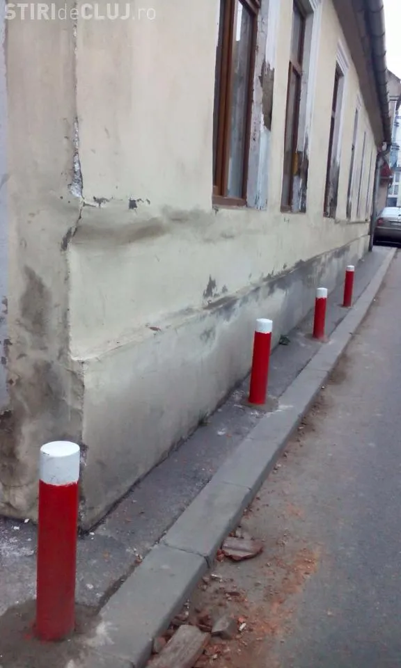 Oficialii Primăriei Cluj-Napoca susțin că acești stâlpișori au fost montați cu un motiv clar. În acel sector, drumul este foarte îngust, iar mașinile grele care trec prin zonă ating burlanul casei din imaginea de mai jos. ”E o casă care are acoperișul foarte jos și stâlpișorii au fost puși pentru a proteja acoperișul. Așa nu se pot apropia mașinile de tonaj de casă. Este o măsură de protecție”, precizează oficialii Primăriei.