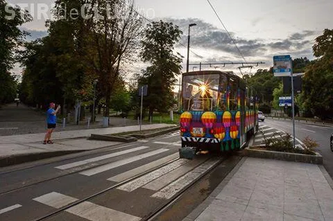 Un nou tramvai colorat, al doilea din oraș, circulă prin Cluj-Napoca, începând de luni seară.