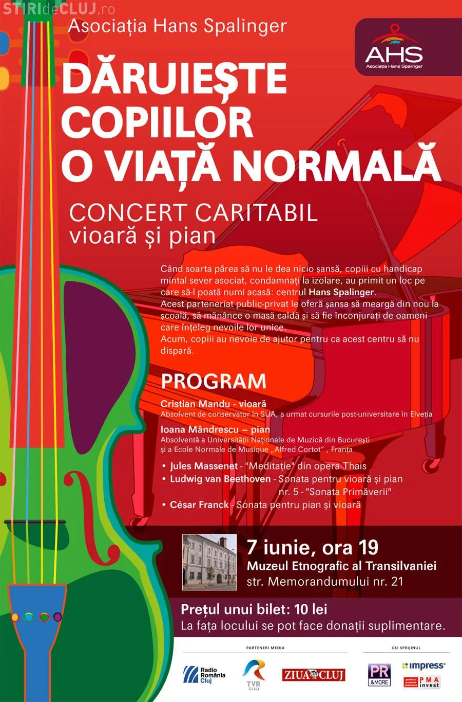Un violonist de exceptie, de profesie pilot de avion, impreuna cu o interpreta pentru care pianul nu are secrete, va sustine, joi, 7 iunie, un concert caritabil pentru a-i ajuta pe copiii aflati in grija Asociatiei "Hans Spalinger".