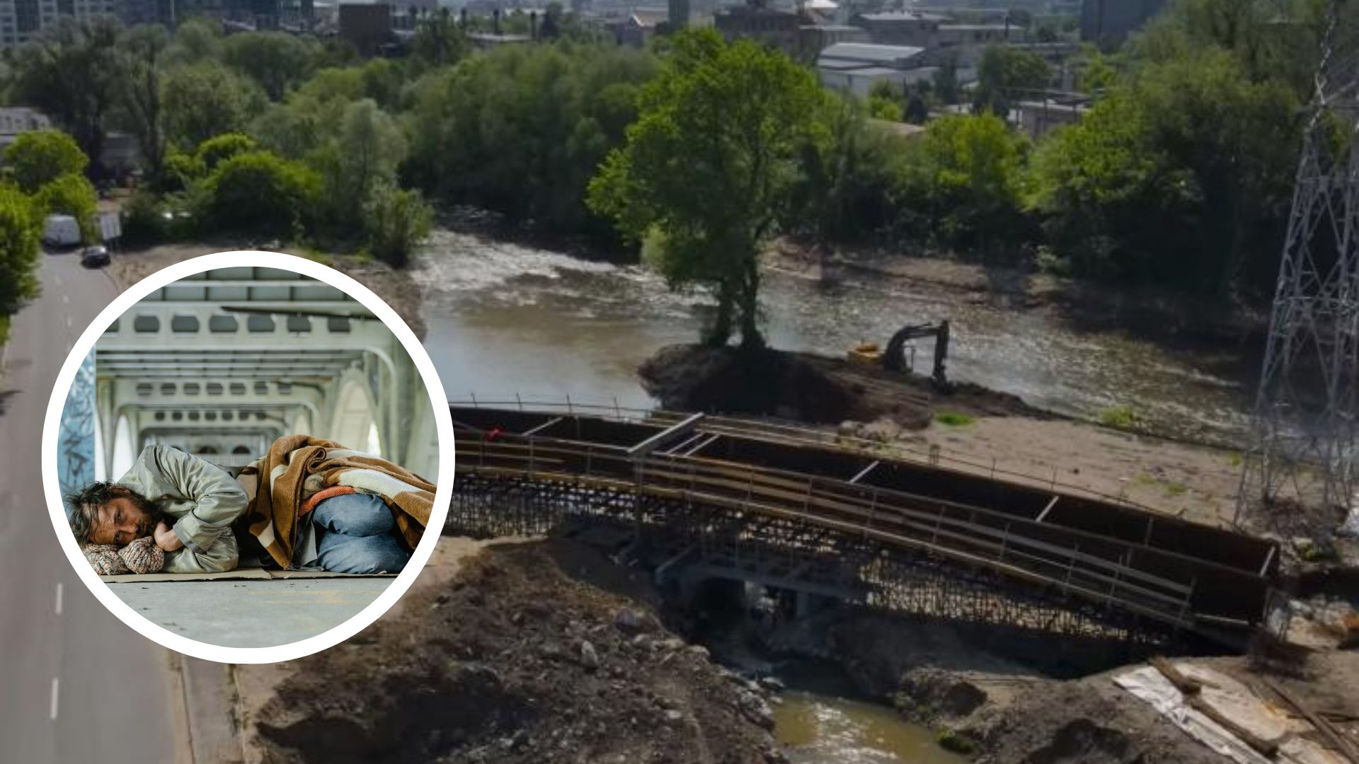 Un pod din Cluj, transformat într-un focar de murdărie și pericol pentru clujeni: Oameni ai străzii lasă gunoaie sub pod și pe spațiul verde