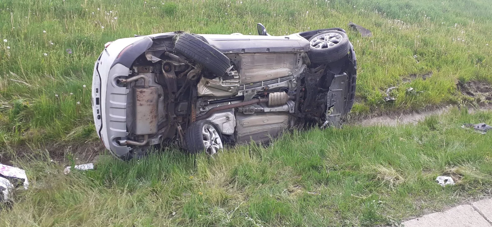 Un șofer a ”aterizat” cu mașina pe o parte, pe Autostrada Transilvania. Viteza face victime - FOTO