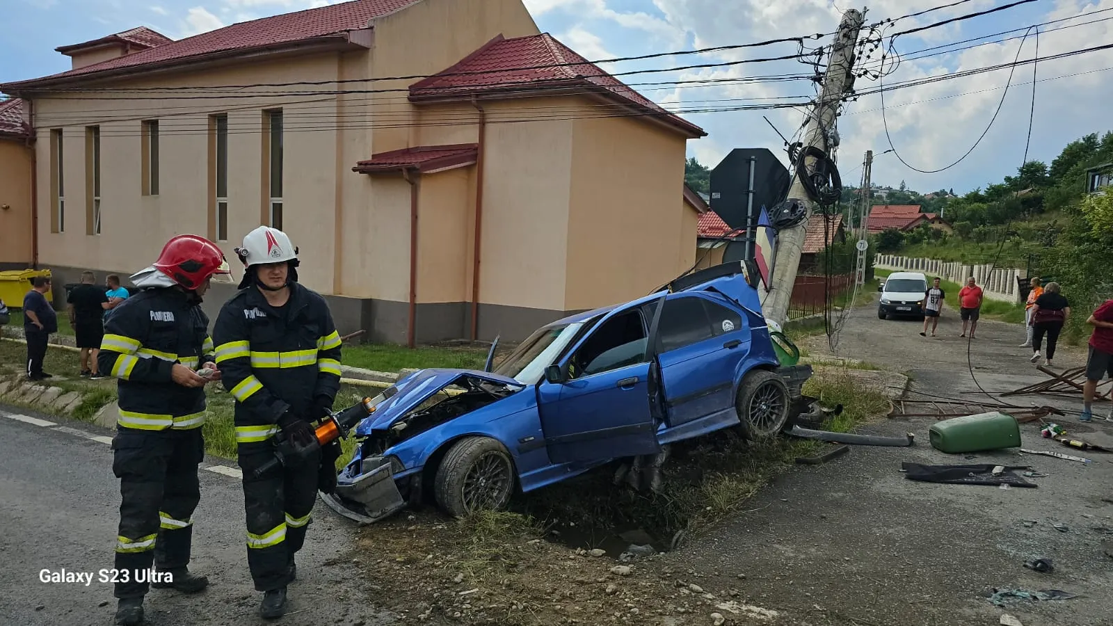 După cum se vede din imagine, impactul a fost deosebit de violent și la viteză mare, pentru că stâlpul de beton a fost rupt. Mașina care l-a lovit este ireparabilă.