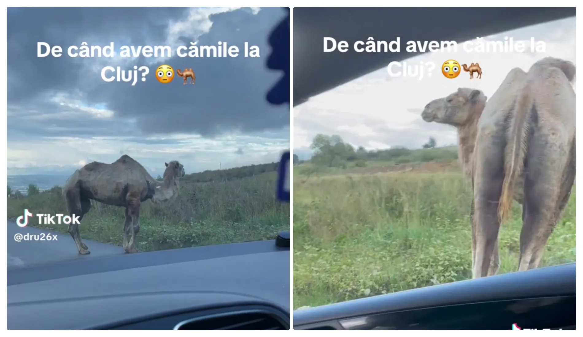 Un șofer a făcut un șoc pe un drum din Cluj, după ce i-a apărut o cămilă în față - VIDEO