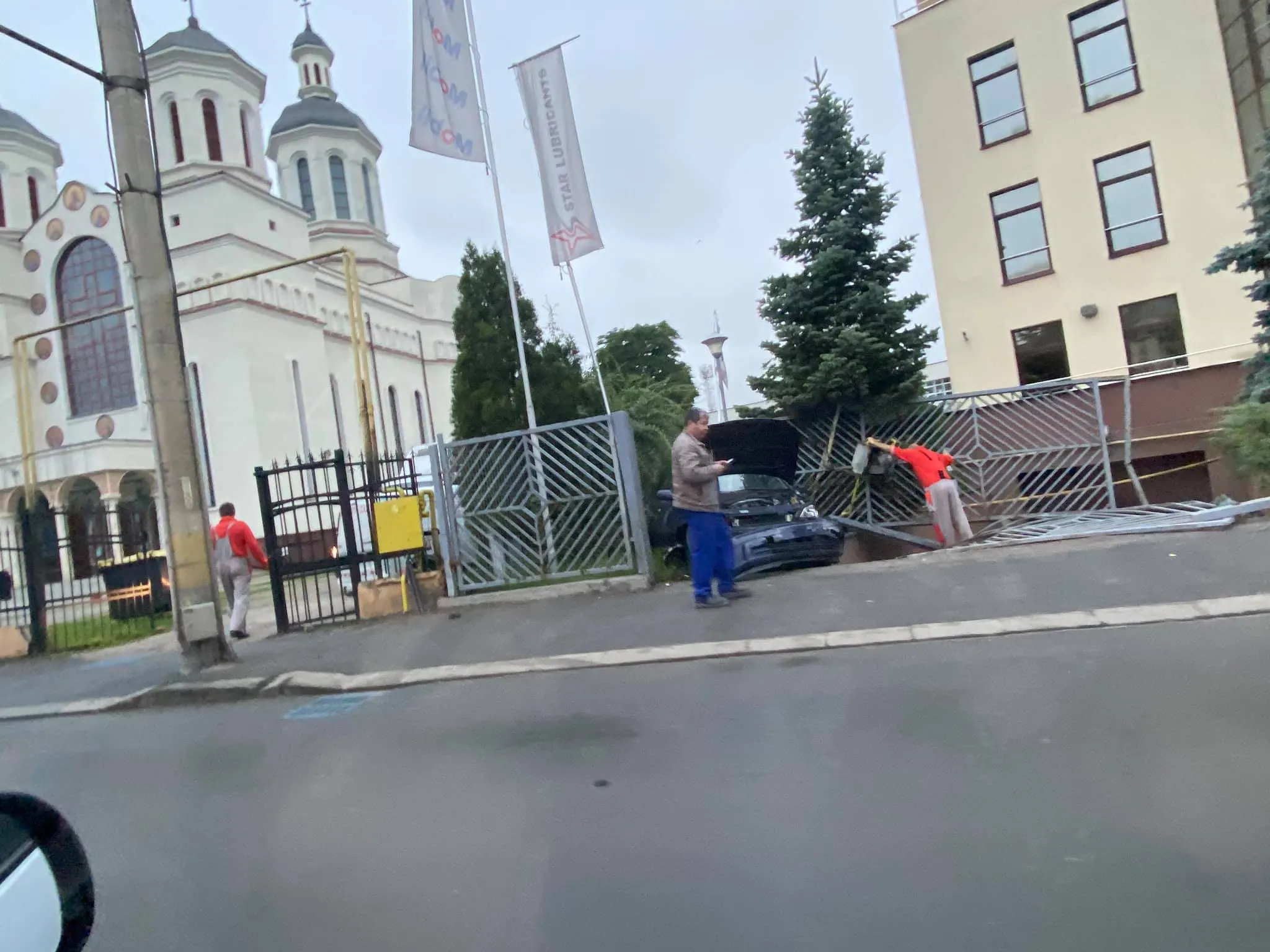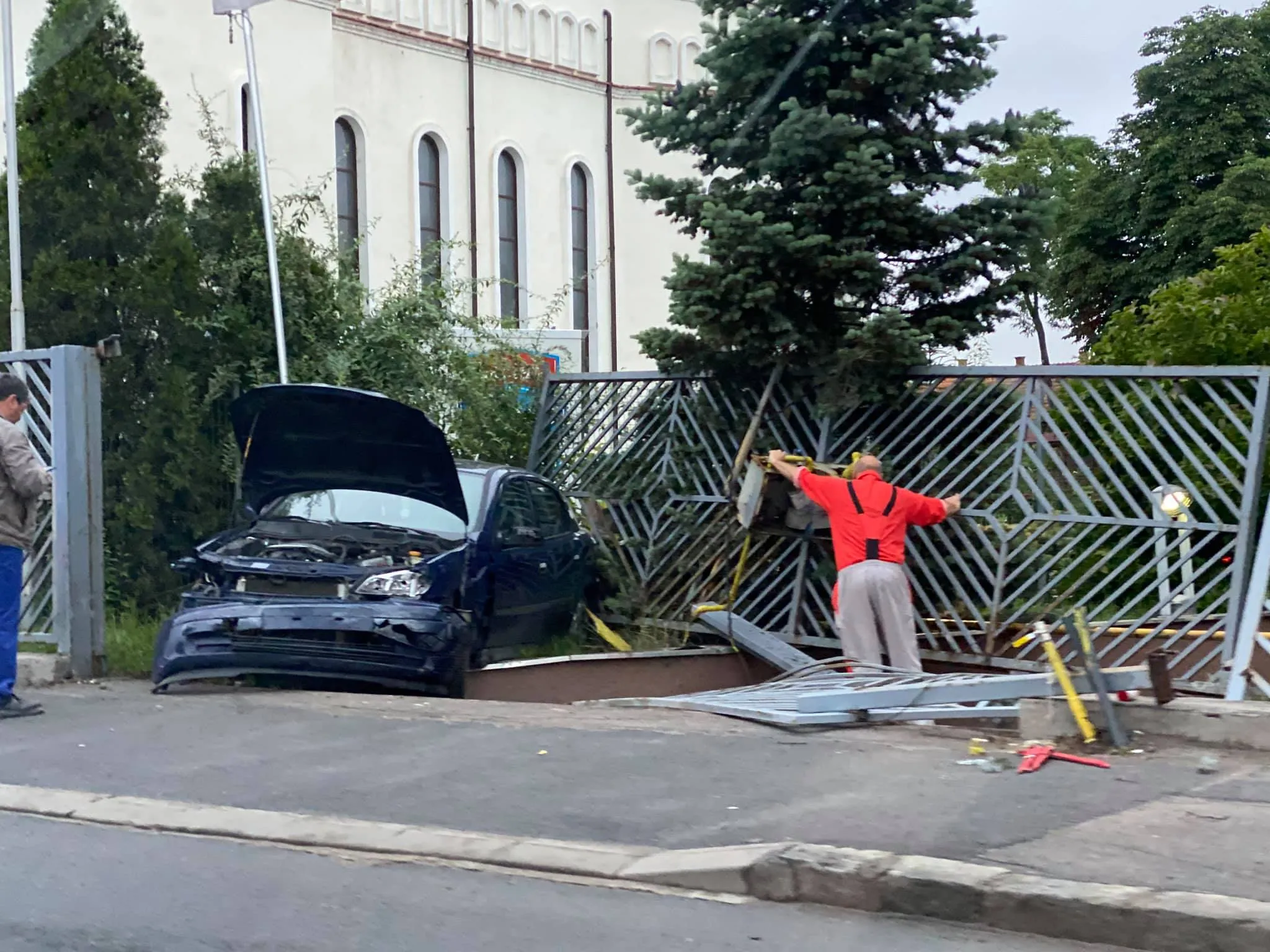 Un șofer a intrat în poarta bisericii din Someșeni, luni dimineața, la ora 5.50, pe fondul vitezei excesive.
