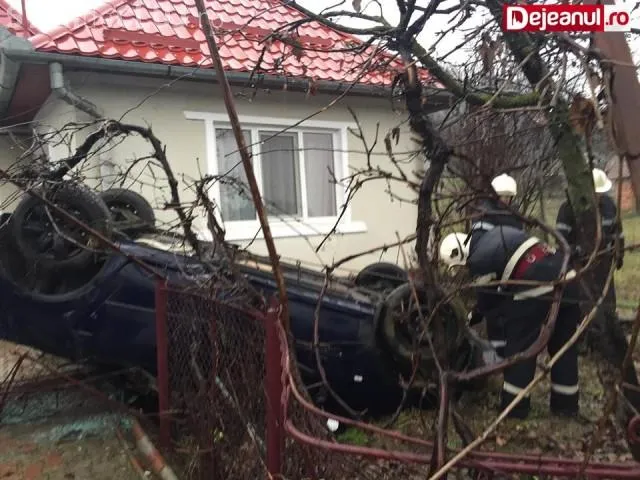 Accidentul a avut loc in jurul orei 7:30 la iesire din localitatea Bunesti. Soferul dejean in varsta de 30 de ani se deplasa cu autoturismul Dacia Logan pe directia Dej – Cluj-Napoca, dar intr-o curba, din cauza neadaptarii vitezei la conditiile unui carosabil umed, a pierdut controlul asupra directiei de mers, a parasit soseaua prin partea dreapta, a rupt gardul unei case, dupa care s-a rasturnat pe plafon in curtea acesteia, scrie dejeanul.ro.