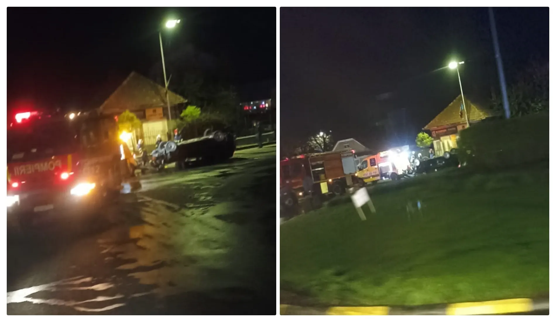 La fața locului s-au deplasat o autospecială cu modul de descarcerare și un echipaj SMURD, unde au găsit un autoturism răsturnat pe plafon, cu ocupanții ieșiți din acesta. Doi tineri au fost consultați de către echipajul SMURD, fără a fi transportați la spital”,, precizeazaă ISU Cluj.