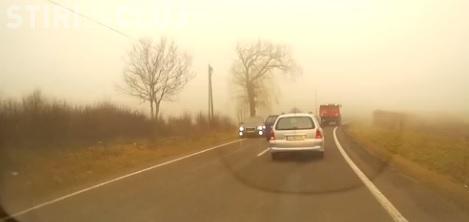 Un șofer a intrat într-o depășire, pe un drum în condiții de ceață, dar a ”paralizat” de frică în timpul manevrei.